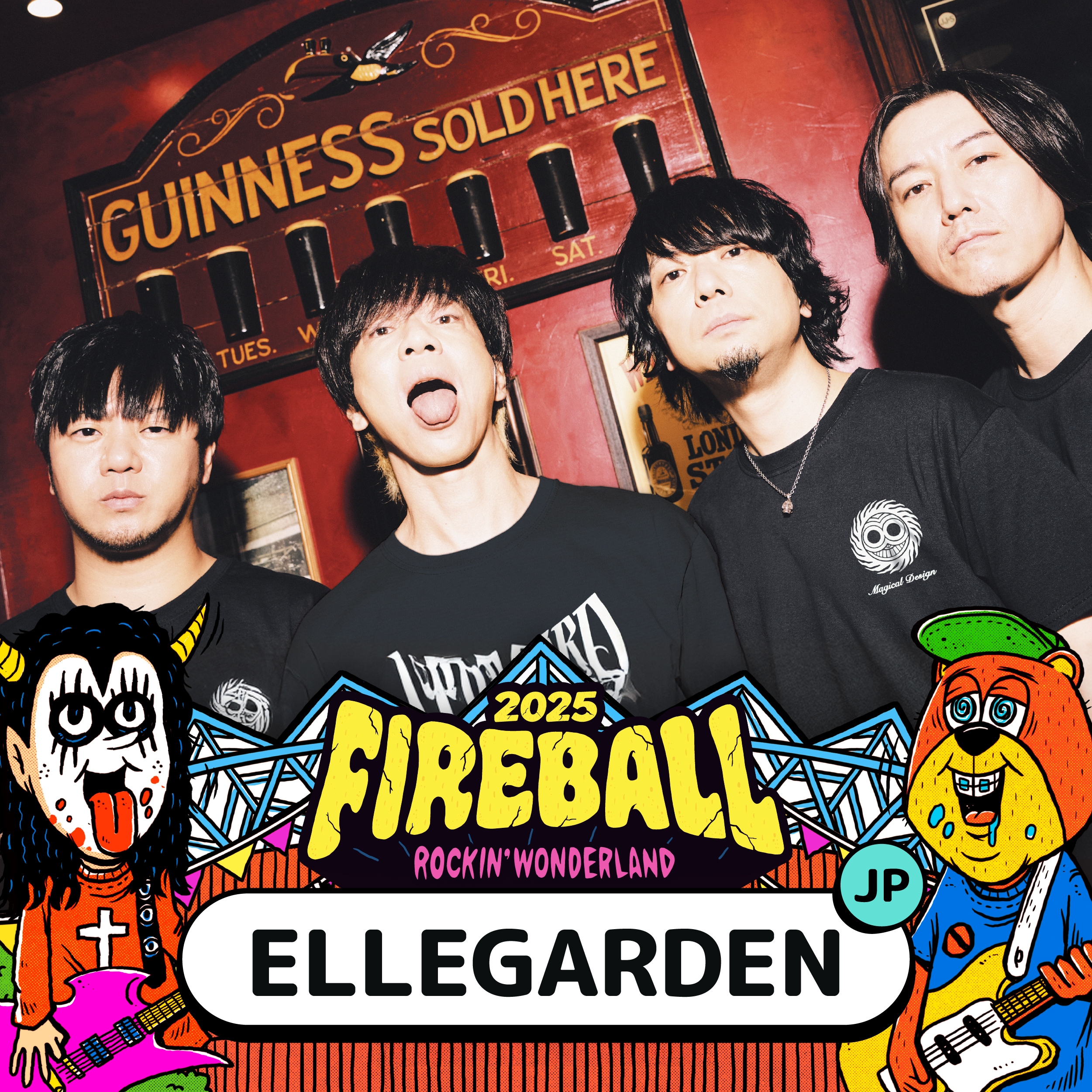 2025火球祭 今日公布最終波名單,魔王 ELLEGARDEN再次重磅回歸!至今已成團 27 年的 ELLEGARDEN,是 2000 年代紅遍日本海內外的指標性樂團,影響無數樂團如 ONE OK ROCK、WANIMA 等,也是不少龐克樂迷的啟蒙傳奇。他們在歷經了中間十年的休團後,終於在2018年宣布復出,並於 2019 年登上火球祭,獻上樂團首次台灣演出。與滅火器樂團私交甚篤的 ELLEGARDEN,主唱細美武士曾與滅火器合作過歌曲,更曾在2023火球祭時登上滅火器的舞台合唱 ELLEGARDEN 經典曲目〈Make a Wish〉。 2024 樂團因故無法來台讓樂迷惋惜不斷,終於盼到 2025 樂團再次回歸火球祭舞台的消息。滅火器主唱大正也說:「這次火球祭跟 BRAHMAN 主辦、在日本的另一個音樂祭撞期,但講義氣的細美武士為了我們硬是喬了樂團行程,讓 ELLEGARDEN 能夠守約再次登上火球祭,真的感謝我的好友!等不及再次招待他們了!」。ELLEGARDEN 也於日前釋出為動畫《航海王》特別打造的片頭單曲〈Carmine〉,也是樂團首次打造動畫主題曲,也讓樂迷期待是否能在這次聽到新曲首唱。