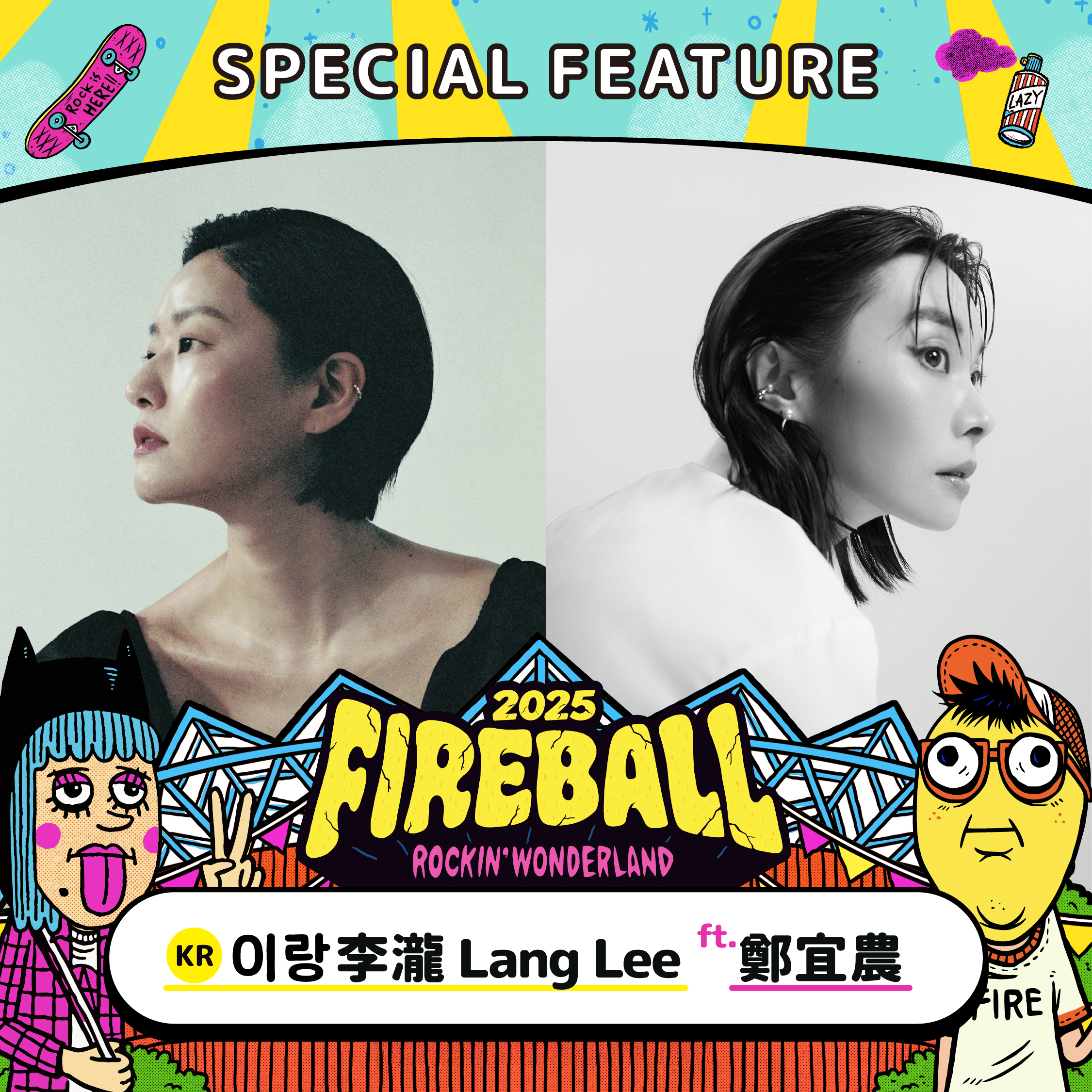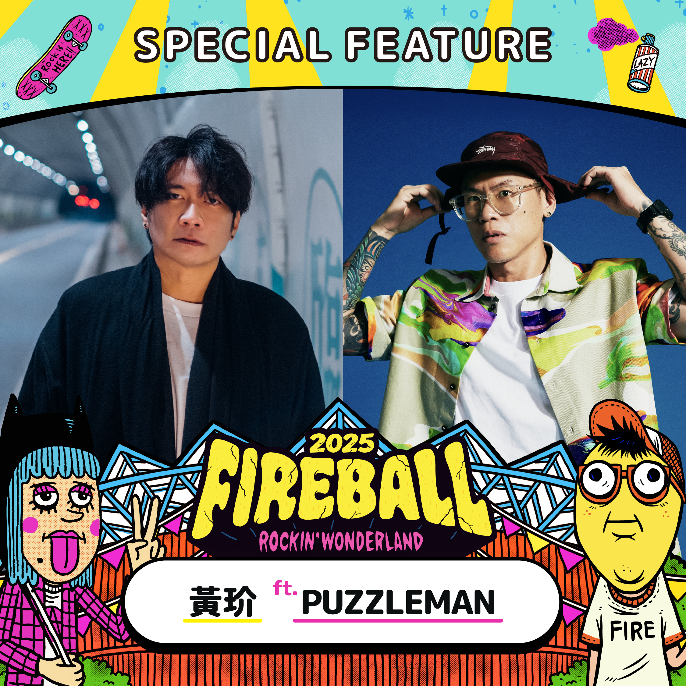 火球祭也在上週驚喜公開特殊 feature 節目內容,韓國吟唱詩人李瀧將與金曲台語歌后鄭宜農聯手登台,首次蒞臨火球祭的創作歌手黃玠與好友 PUZZLEMAN 合作出演,今年推出 20 週年最新專輯的隨性則邀請 SKARAOKE 樂團一同加入龐克派對!身為主場的滅火器也特別宣布將與神秘嘉賓合體演出,這份驚喜將留給所有買票入場的樂迷,敬請期待!